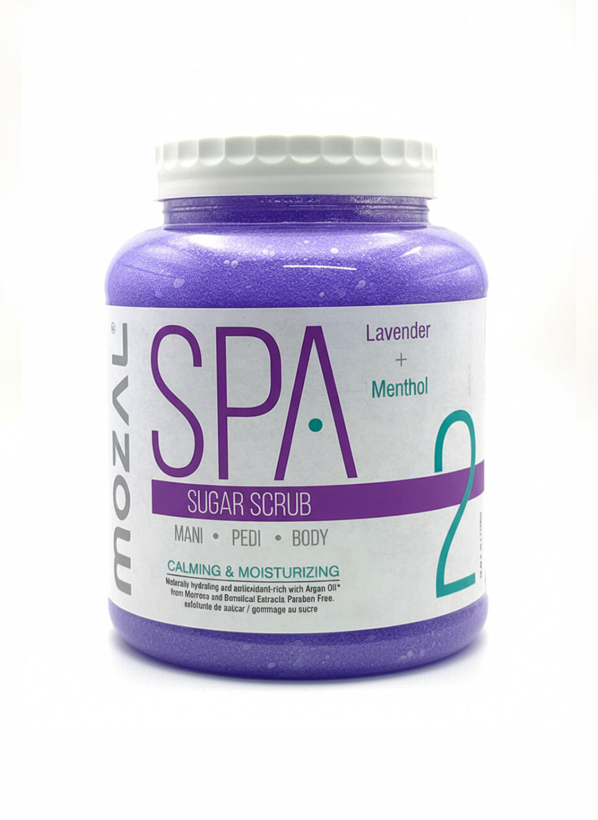 Natural sugar suspended in certified organic oil create the base of our luxurious scrub for mani pedi and body. The sugar works to exfoliate dead sell from the skin, while our blend of precious Argan,Olive,Jojoba and spearmint oil leave you velvety soft and glowing. Just one of our signature organic experience from MOZAL SPA..Step 2 our 4-step system...